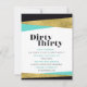 Invitation moderne à la fête du 30e anniversaire. La carte dit : Trente-Quatre. Les couleurs principales de l'invitation sont l'aqua, le noir et l'or. Il contient aussi de beaux détails typographiques.