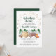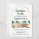 Sweet rustique invitation à saupoudrer avec de mignons illustrations d'animaux de bois avec leur tente campant dans les montagnes et la forêt, une superposition d'étoiles d'or et "Adventure Awaits" et le nom de la future mère dans un script vert de chasseur foncé. Personnalisez facilement les détails de la douche d'arrosage pour bébé.