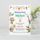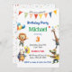 Jolie invitation d'anniversaire colorée, bonne pour les garçons et les filles. Il y a des animaux drôles et heureux comme le crocodile, l'hippo, la girafe et le lion.