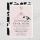 Cette invitation à la fête d'anniversaire de cette jeune fille mignonne et moderne "rosée, moo, coq-a-doodle do" présente un cochon, un poulet et une vache avec une grange rose sur un arrière - plan rose roux encadré d'une bordure blanche. Au verso, un arrière - plan blanc avec des motifs de vache noire. Personnalisez-vous pour vos besoins. Vous pouvez trouver d'autres produits correspondants dans mon magasin.