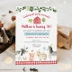 Cette mignonne invitation à l'anniversaire comprend des animaux de ferme aquarellés aux accents floraux verdoyants, des confettis et une bordure en vichy rouge.