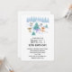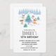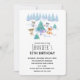Invitation d'anniversaire avec une scène de forêt lunaire. De joyeux animaux de la forêt dansent autour d'un sapin vert avec des cadeaux en dessous. Joyeux et joyeux aquarelle design.