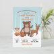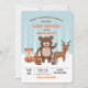 Une invitation juvénile adorable mettant en vedette bébé et des animaux des bois sur un fond de forêt enneigée. (<a href='https://www.freepik.com/free-vector/pack-of-beautiful-forest-animals_1426796.htm'>Conçu par Freepik</a>). <br/><br/>La carte est facile à personnaliser avec votre texte, police et couleur de police.<br/><br/>Pas exactement ce que vous cherchez ? Tous nos produits peuvent être conçus sur mesure pour répondre à vos besoins sans frais supplémentaires.<br/><br/>Contactez-nous simplement à askcottonlamb@gmail.com.<br/><br/>Produits coordonnés disponibles : Demandez-nous !