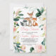 Invitation de baby showers de bois avec feuilles verts et roses d'aquarelle rose et un groupe d'adorables animaux de la forêt