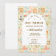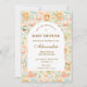 Un design à l'aquarelle fantaisiste présentant un mélange ludique d'animaux pastel de l'été entourés de feuilles tropicales, de coquillages, d'étoiles de mer et de détails botaniques doux. La palette joyeuse de pêche, menthe, corail et bleu clair crée une atmosphère légère de livre d'histoires, tandis que la disposition élégante en arc maintient les détails de la célébration magnifiquement encadrés et faciles à lire. Parfait pour une célébration estivale chaleureuse et joyeuse avec une esthétique charmante de nurserie.