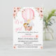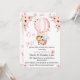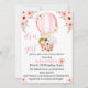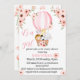 watercolor jungle safari animaux sur une montgolfière rose floral, fleur sauvage rose dans le dos, safari zoo animaux bébé douche fille Invitation.