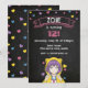 A cute anime girl birthday invitation with a chalkboard background and colorful hearts.