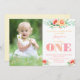 Floral 1er Anniversaire Photo Cartes d'invitation pour fille au soleil couleurs d'été comme le jaune, le corail et le rose