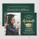 Annoncez un diplôme d'études secondaires ou collégiales et la famille et les amis invitations à célébrer avec des invitations personnalisées photo vert et or fête. L'image et le libellé sont simples à personnaliser et les couleurs sont faciles à changer avec l'outil de design Zazzle. Ce modèle téléchargeable est configuré comme une carte de faire-part combinée et une invitation à la fête qui peut être customisée avec tous les détails de votre choix, tels que les noms des parents, les distinctions spéciales, le titre du diplôme, la citation inspirante préférée, les plans futurs du diplômé ou nouvelle adresse. Le design est composé d'un arrière - plan vert foncé, d'un casquette de carton de faux papier, d'une élégante calligraphie moderne, d'une typographie vintage classique et d'une photo préférée, telle qu'une photo de haut niveau ou une image de la cérémonie de début. Veuillez noter que l'or est imprimé en couleur et non en métal. Cette carte de graduation imprimable est une façon élégante d'annoncer une fête spéciale. Félicitations au diplômé !