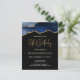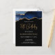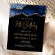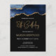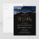 Cette invitation d'anniversaire 18 ans tendance sous forme de carte postale présente une image aquarelle d'une géode d'agate dans des nuances de bleu avec des reflets de faux or. Les mots "18e Anniversaire" apparaissent en faux or brillant dans une police d'écriture manuscrite moderne décorative. Personnalisez-la avec le nom de l'invité d'honneur en texte de couleur or et les détails en blanc sur fond noir.