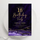Invitation d'anniversaire 18 ans agate violette et or. Design moderne élégant avec fond de géode marbre agate aquarelle, or faux brillant et police de caractères script. Carte d'invitation tendance parfaite pour une célébration d'anniversaire de femme stylée. Invitations Zazzle imprimées ou modèle de template numérique imprimable instantané.