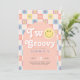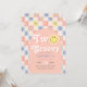 Cette invitation d'anniversaire de 2 ans pour filles aux accents groovy capture l'ambiance rétro des années 70 avec un thème rose mignon, des accents floraux et un motif à carreaux pastel. Entièrement personnalisable, elle comprend un espace pour les détails de votre fête dans une écriture élégante. Parfaite pour un anniversaire boho "Two Groovy", ce design ludique et féminin ajoute du charme au jour spécial de votre petite !