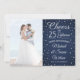 Invitez famille et amis à une élégante célébration d'anniversaire avec des invitations personnalisées pour une fête sur le thème bleu marine et blanc avec 2 photos. Le texte "Tchin pour 25 Ans" est simple à personnaliser pour n'importe quelle année ou type d'événement, et les images sont faciles à remplacer par les vôtres. (ASTUCE DE PLACEMENT D'IMAGE : Un moyen facile de centrer une photo exactement comme vous le souhaitez est de la rogner avant de la télécharger sur le site Web Zazzle.) Le design présente des points de confettis argentés brillants, une calligraphie élégante et moderne, une typographie art déco vintage classique et deux images de votre choix. Veuillez noter que l'argent est imprimé en couleur grise, et non en feuille métallique. Joyeux Anniversaire et tchin au couple pour leur célébration anniversaire !