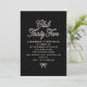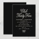 Une invitation élégante noire et blanche présente une écriture perle blanche et un petit nœud perle sur un fond noir. Club Trente-Cinq lui donne une vibe branchée, tandis que le nœud en bas ajoute une féminité élégante.