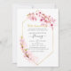 Invitation d'anniversaire de mariage de 50 ans à thème floral aquarelle rose avec fleur de sakura et cadre géométrique doré personnalisable selon vos besoins.