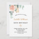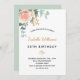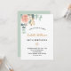 Une invitation élégante pour une fête d'anniversaire de 50ème (ou tout âge). Un arrière - plan blanc chic. Décoré d'or rose et de rose pastel rose vif, de fleurs roses, de feuilles d'eucalyptus verts, de sprigs, de verdure et d'une fausse feuille d'or. Personnalisez et le nom et les détails du parti. Lettres noires et dorées. Le nom est écrit avec un script de style moderne écrit à la main. Dos : couleur arrière - plan verte. Cette carte est également disponible dans notre magasin avec un arrière - plan rose de couleur or sur le dos.