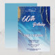 Invitation Anniversaire 60 Ans Paillettes Marbre Bleu Or. Célébrez un événement marquant avec style grâce à cette invitation d'anniversaire surprise glamour, avec des accents de paillettes dorées saisissants et un fond marbré bleu élégant. Parfaite pour honorer une femme fabuleuse qui fête ses 60 ans, cette invitation donne le ton pour une célébration inoubliable. Personnalisez tous les textes et images pour correspondre aux détails de votre fête et créez un souvenir mémorable.