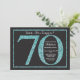 Invitation pour un 70e anniversaire surprise. Invitation pour une fête d'anniversaire avec paillettes noires et sarcelle sur fond tableau noir. Anniversaire surprise. Anniversaire adulte. Fête d'anniversaire pour homme ou femme. Pour une personnalisation plus poussée, veuillez cliquer sur le bouton "Personnaliser" et utiliser notre outil de conception pour modifier ce modèle.