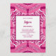 Faites ressortir votre célébration avec cette invitation d'anniversaire rose abstraite unique, conçue avec des motifs symétriques complexes et des textures de pinceau expressives. Les tons vibrants de fuchsia et de rose créent un look artistique moderne qui plaît aux amateurs de styles de design abstrait, décoratif et contemporain.