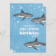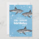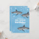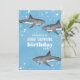 Ce design mignon comprend une piscine d'anniversaire mignonne eau de mer, un requin d'aquarelle poisson de mer animal, faune sauvage vie marine marine, un requin poisson gris noir, un amusant invitation de fête d'anniversaire whimsical, une invitation pour la fête d'anniversaire d'enfant, une fête de natation d'été amusante, une typographie cool unique créative, une invitation pour la fête d'anniversaire d'enfants, une invitation de requin