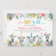 Cette mignonne invitation à l'anniversaire comprend des animaux de safari à l'aquarelle avec des feuilles d'or et des confettis.