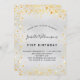 Pour un 21ème anniversaire élégant (ou tout âge). Un arrière - plan faux argenté. Décoré avec de la poussière de parties scintillant en faux or. Personnalisez et ajoutez un nom, un âge et des détails de la fête. Le nom est écrit avec un script de style manuscrit