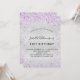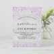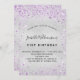 Pour un 21ème anniversaire élégant (ou tout âge). Un arrière - plan métallique à l'aspect faux argenté. Décoré avec de la poussière de parties scintillant en faux violet. Personnalisez et ajoutez un nom, un âge et des détails de la fête. Le nom est écrit avec un script de style manuscrit