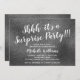 Cette invitation chic et élégante de fête d'anniversaire de surprise comporte un arrière - plan élégant de parties scintillantes d'argent de faux avec la typographie moderne qui est grande pour n'importe quel âge.