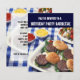 Famille Invitation et amis à une fête d'anniversaire barbecue barbecue avec cette mignonne invitation. Hamburgers frais, ketchup, moutarde, shiskebobs du grill. Arrière - plan de nappe à damiers bleu et blanc. Customisez avec votre texte.