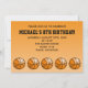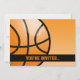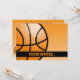 Invitation à une fête d'anniversaire sur le thème basket-ball avec un design orange et noir de dessin animé.