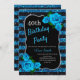 Elégante parties scintillant à rayures noir et bleu et rose bleu invitation à la fête d'anniversaire pour les femmes de n'importe quel âge. L'âge peut être modifié pour n'importe quel âge. Le texte peut être changé en n'importe quoi pour s'adapter à votre événement. Les polices, la couleur de police et le texte sont entièrement personnalisables ! La forme et le type de papier peuvent être customisés pour correspondre à votre budget et à votre goût!