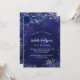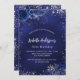 Un arrière - plan bleu marine, décoré de parties scintillant faux argentées, brille et florale bleue. La couleur bleue est inégale. Personnalisez et ajoutez un nom et des détails du parti.