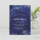 Invitation Anniversaire bleu marine fleurs argent brillant lu