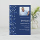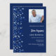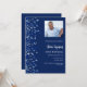 Une invitation moderne, élégante et raffinée. Un arrière - plan bleu marine décoré de confettis bleus. Personnalisez et ajoutez une photo, un nom et des détails de la fête. Texte blanc.