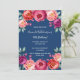 Une carte d'invitation élégante pour une fête d'anniversaire de 50e (ou tout âge). Avec des fleurs contemporaines couleur rose vif, violet et or rose, colorées d'eau, les fleurs comme décoration. Un arrière - plan bleu marine chic. Le nom est écrit avec un script de style à la main blanc.