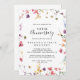 Cette invitation classique et colorée à l'anniversaire du 50ème mariage est parfaite pour un événement moderne. Le design présente des fleurs sauvages jaunes, violettes et blanches avec du feuillage dans un arrière - plan rose et vert aquarelle. Changez le numéro pour célébrer n'importe quel jalon anniversaire.