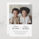 Une invitation d'anniversaire conjointe moderne avec votre propre photo et deux sections pour le nom et l'âge de chaque enfant.
