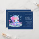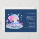 Invitation d'anniversaire avec une image d'une pieuvre mignonne et féminine avec une fleur sur la tête. Grands yeux brillants et visage amical.