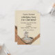 Cette invitation à la fête à carte plat est de couleur pâle avec une dame habillée en robe blanche et un grand casquette blanc assis à côté des oeufs dans un nid d'oiseaux dans un arbre. Customisez vos informations avec les modèles.