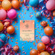 Invitation Anniversaire de ballons adorable avec bébé éléphan