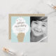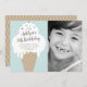 Une invitation fantaisiste pour une fête anniversaire de enfant avec un cône de glace à la main et dégoulinante avec des arrosées d'arc-en-ciel et la photo de l'enfant. Tout le texte est personnalisable de sorte que vous pouvez facilement changer la police, la couleur, le message et le placement pour le rendre vraiment unique.