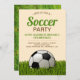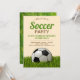 Invitation vos invités avec cette invitation de fête d'anniversaire cool avec un ballon de football sur une pelouse avec typographie moderne contre un arrière - plan beige. Ajoutez simplement les détails de votre événement sur ce modèle facile à utiliser pour en faire une invitation unique. Retournez la carte pour révéler une belle texture d'herbe verte au dos de la carte.