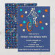 Célébrez les fans de BMX avec ces invitations. Elles présentent mon illustration de style bande dessinée dessinée à la main d'un squelette de loup-garou conduisant un vélo BMX entouré d'étoiles. Les graphiques ivoire, bleu aqua et orange sont posés sur un fond bleu. En dessous, tous vos détails de fête sont dans une typographie de couleur ivoire coordonnée.