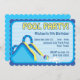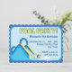 Cette invitation mignonne d'anniversaire de réception au bord de la piscine comporte une grande glissière d'eau sur une carte brillamment colorée et les gisements personnalisables des textes pour votre information de partie.