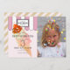 Cette invitation personnalisée pour la fête d'anniversaire du salon de crème glacée de cette fille mignonne et rétro comprend un arrière - plan rose clair avec votre photo, une crème glacée avec des arroses et une cerise sur le dessus, et des auvents avec des rayures roses et blanches. L'envers est doté d'un arrière - plan rose pâle avec des rayures de diagnostic de fausse feuille d'or. Personnalisez-vous pour répondre à vos besoins. Vous pouvez trouver d'autres produits correspondants dans mon magasin.