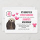 Une invitation à une fête d'anniversaire de la Saint-Valentin avec un schéma de couleurs noir et rose. Illustré avec une photo d'une loutre mignonne avec des cœurs flottant de son esprit. Les cœurs sont roses et dodus avec un reflet brillant. Un petit ballon en forme de cœur avec un ruban sur le côté. Votre texte de fête commence par les mots "Ça va être absolument génial....personnalisez avec les détails de votre fête.