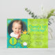 Votre petite froggie adorera cette invitation amusante dans les tons bleus vert et turquoise et complétée par un mignon prince de grenouille caricaturale.