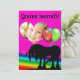 Une invitation d'anniversaire à thème de la licorne brillante, audacieuse et belle, avec une licorne mystique noire, des ballons et un arrière - plan arc-en-ciel. La carte d'anniversaire parfaite pour votre amant de licorne ! Customisez avec la photo de votre enfant.