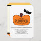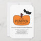 Invités Invitations à la salle d'anniversaire d'automne de votre petit avec nos adorables invitations citrouilles. Le design présente des illustrations de citrouille orange avec "notre petit citrouille tourne [âge]" en lettres vert chasseur et orange citrouille. Personnalisez avec les détails de votre fête d'anniversaire en utilisant les champs fournis.