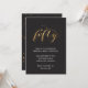 Faites connaître à tout le monde votre cinquantaine avec cette invitation Black and Gold cinquante, moderne et élégante, avec plaquette or. Customisez facilement le texte pour votre propre occasion.